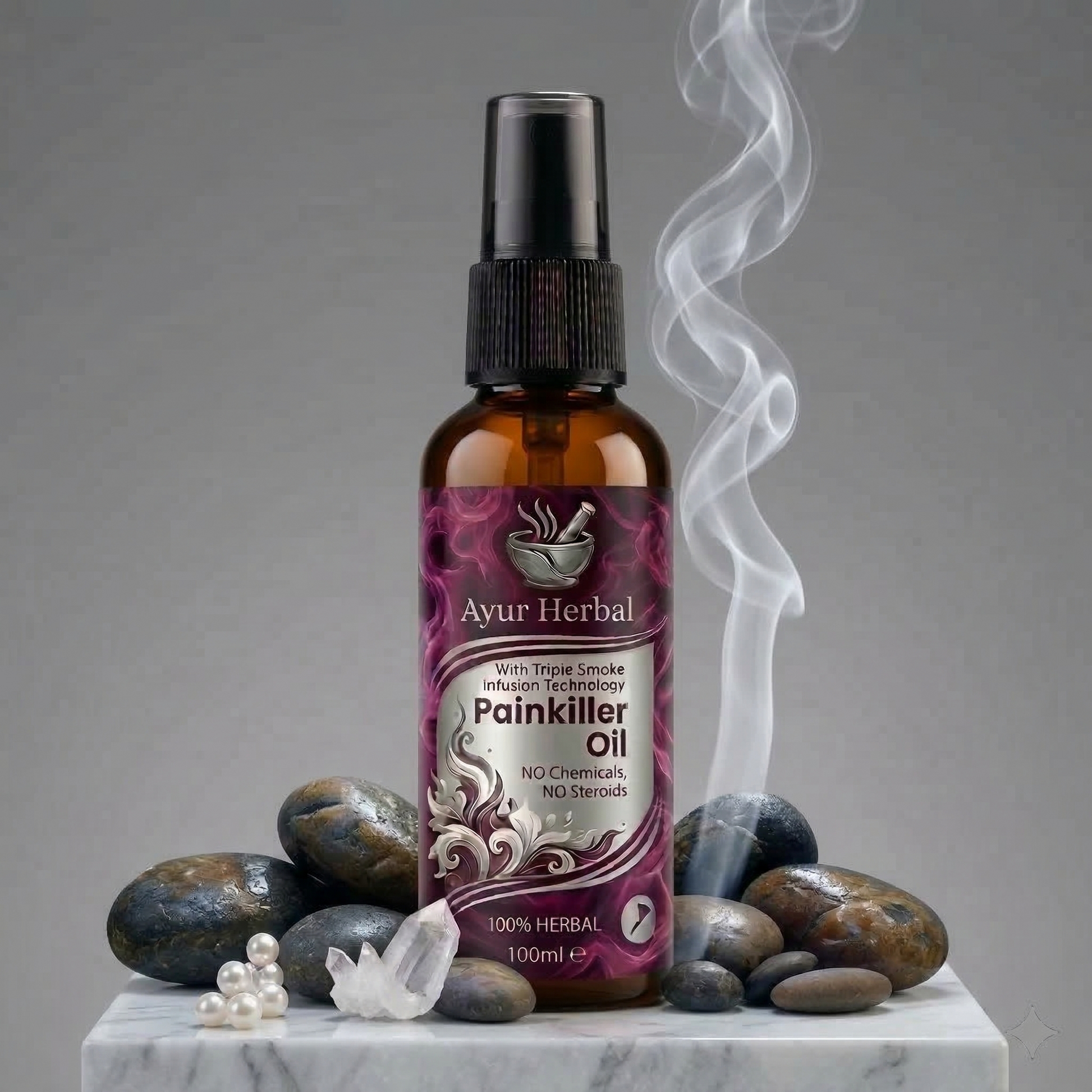 Crafted using traditional Ayurvedic techniques and herbal smoke extracts, this oil is designed to go deep into the source of pain.